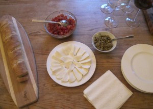 This past weekend we had our friends Katie and Richard over for dinner.  At Alec’s suggestion we decided to do our homemade pizza–a big favorite of his in particular.  For appetizers I made some bruschetta and olive tapenade.  I thought the dinner turned out quite well.  It is a nice way to do pizza because no one needs to agree.  Every can just make their own half of a pizza.  We all had a nice time, and I can’t wait to have them over again.